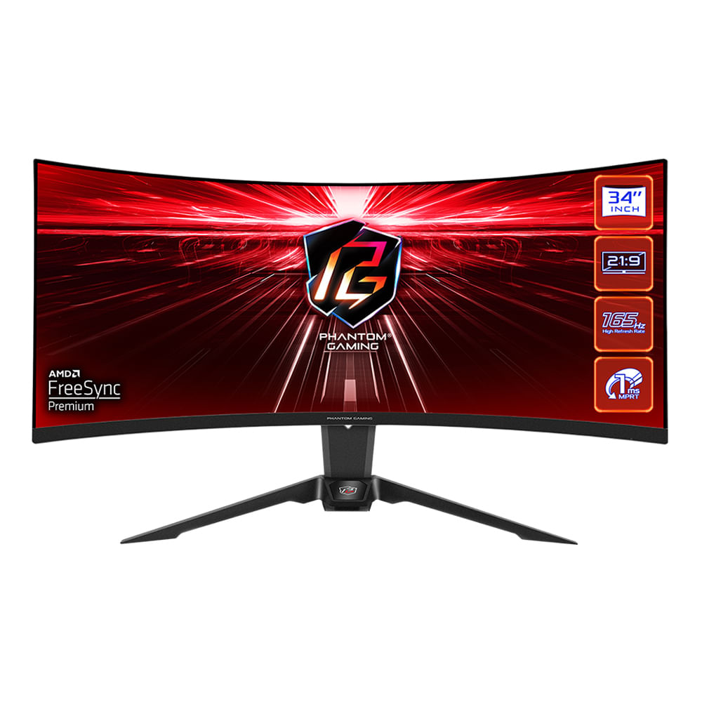 Monitor gamer 34" Asrock PG34WQ15R3A Wi-Fi, Panel VA, WQHD (3440 x 1440), 165Hz, 1ms, entradas HDMI/ DisplayPort