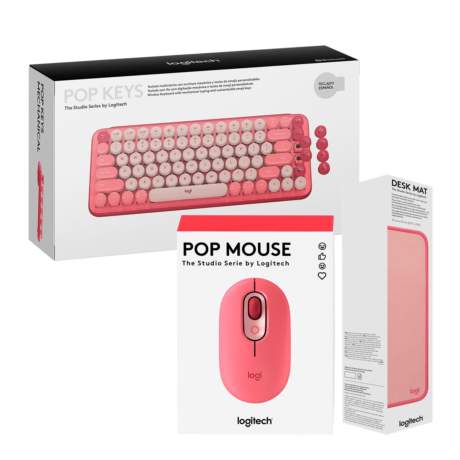 Teclado Pop Keys Wireless + Mouse Pop Bluetooth + Pad Mouse Deskpad 300X700Mm Coral Rose