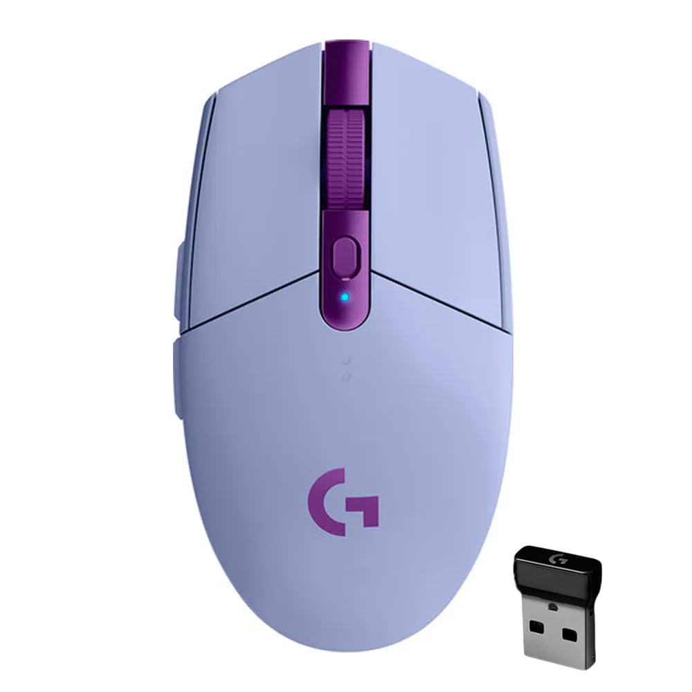 Mouse gamer Logitech G305 Lightspeed Wireless, receptor usb, 12000 dpi, 6 botones, usa pila, lila