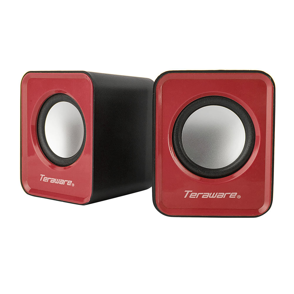 Parlantes para pc Teraware, conexión usb 2.0 y 3.5 mm, 3W x2, 7.8cm x 6.1cm, negro con rojo