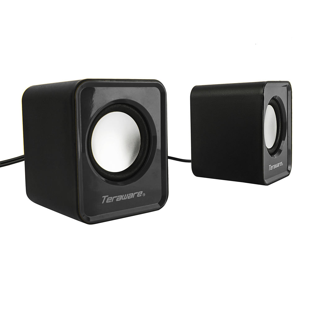 Parlantes para pc Teraware, conexión usb 2.0 y 3.5 mm, 3W x2, 7.8cm x 6.1cm, negro