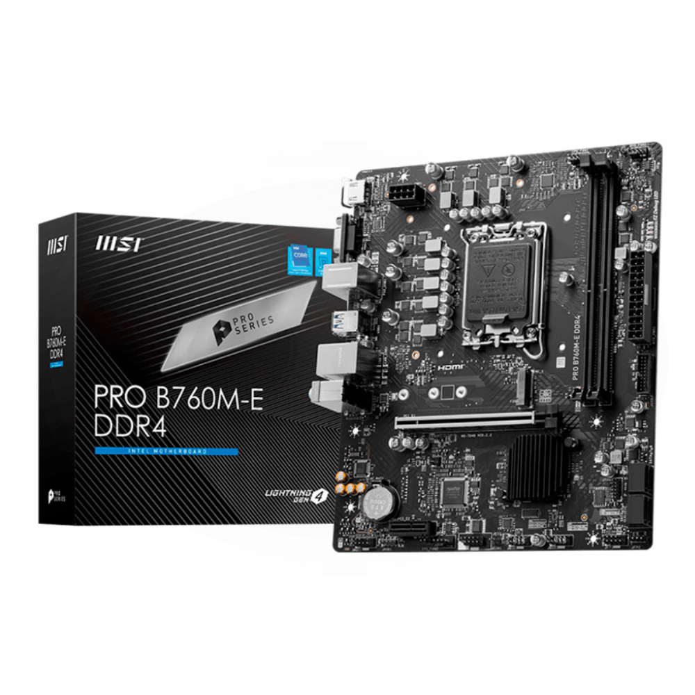 Placa madre MSI PRO B760M-E DDR4, LGA 1700, Intel B760, 128GB, Micro ATX, 4800+ MHz (OC)