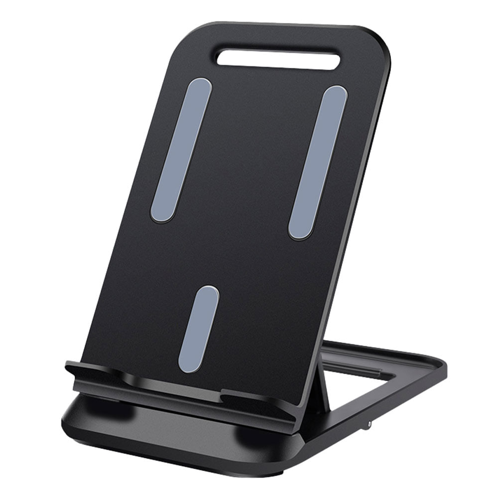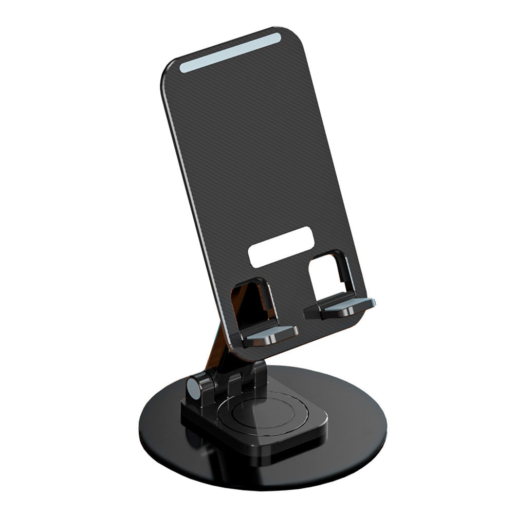 Soporte celular y Tablet 360° de escritorio, aluminio, negro.