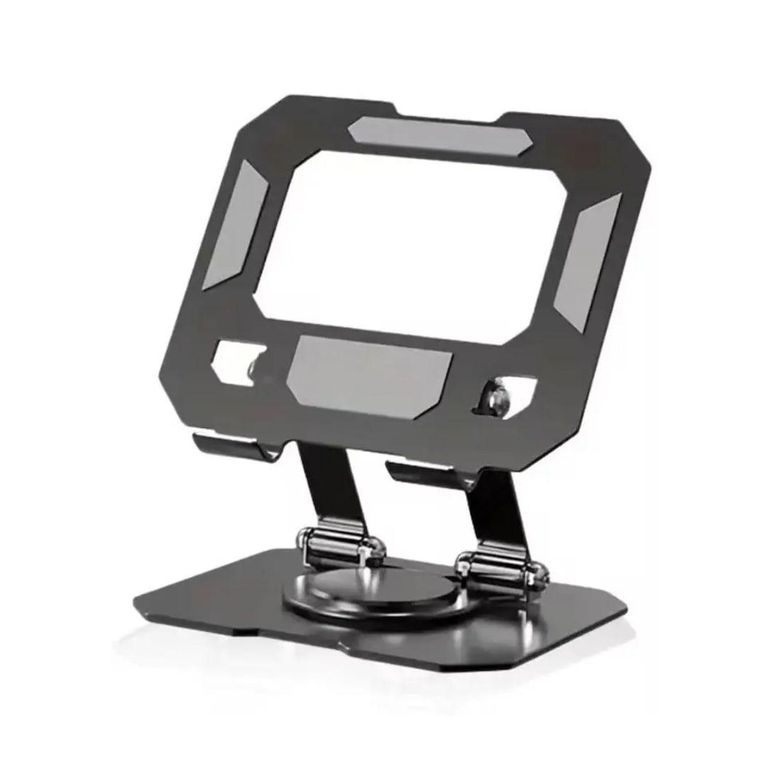 Soporte tablet aluminio 360°, base plegable, altura ajustable, disipación de calor, ergonómico, compatible iPad, negro