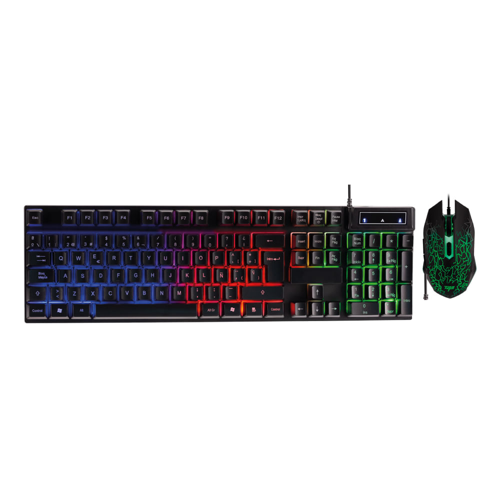 Kit gamer Teraware Teclado alámbrico membrana, layout español + Mouse 3600 dpi, 6 botones, negro