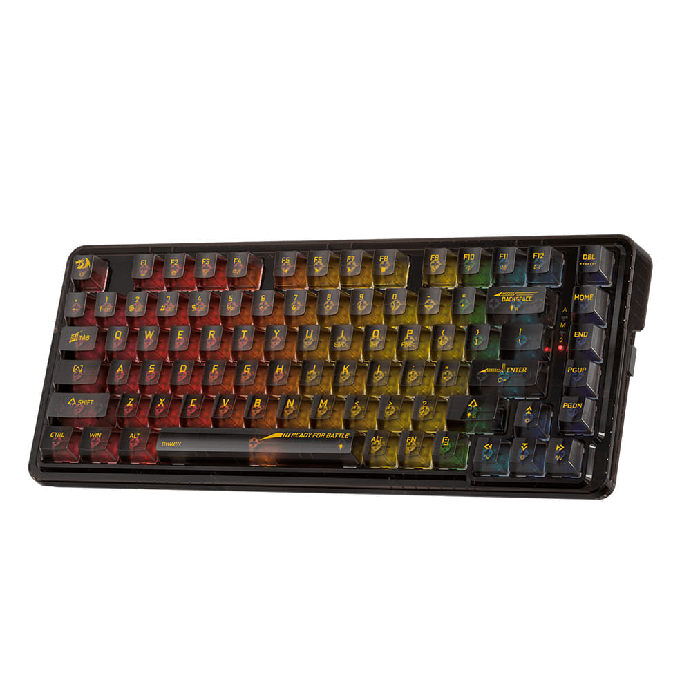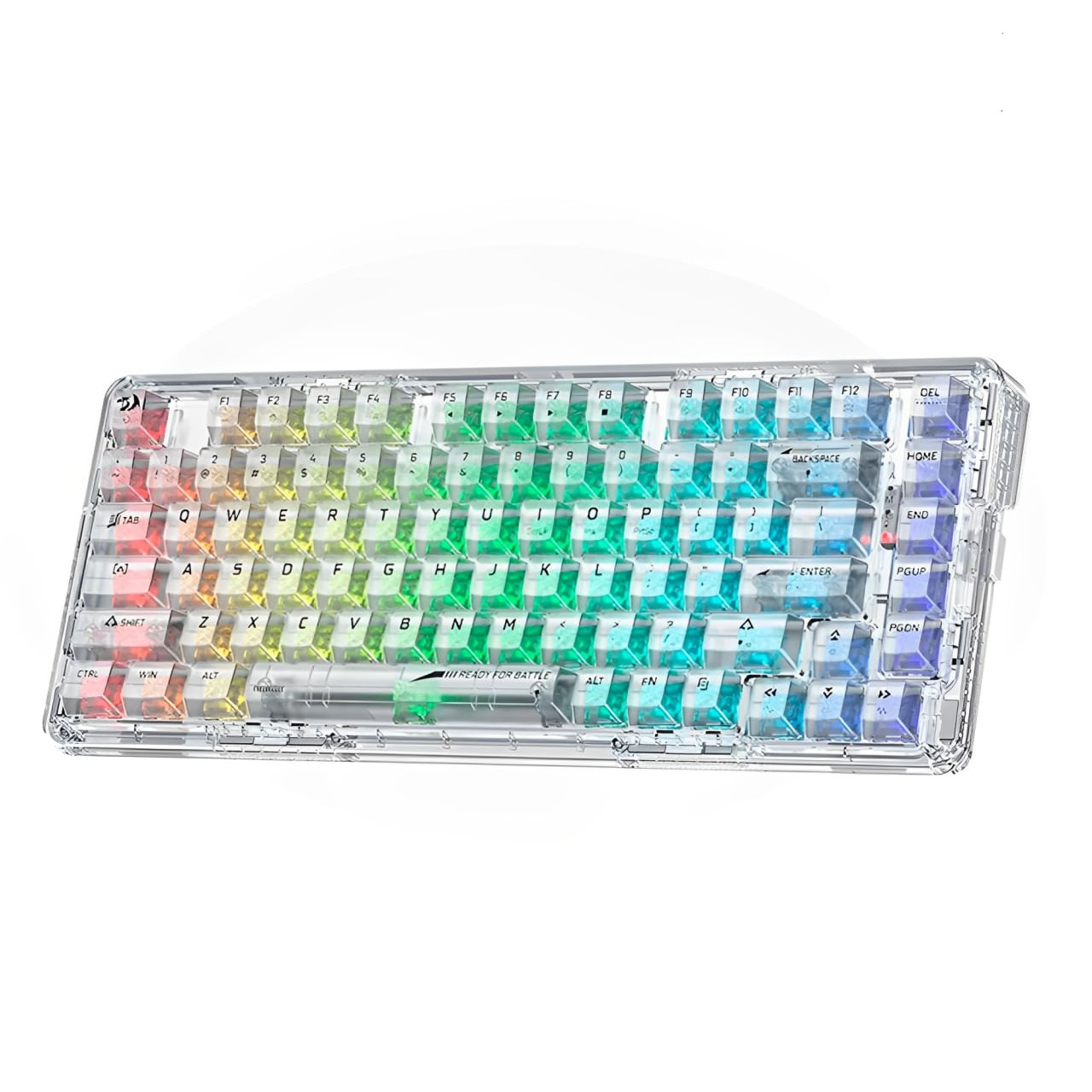 Teclado gamer Redragon ELF Pro K649CT mecánico, inalámbrico, conexión receptor USB/bluetooth, luces RGB, transparente
