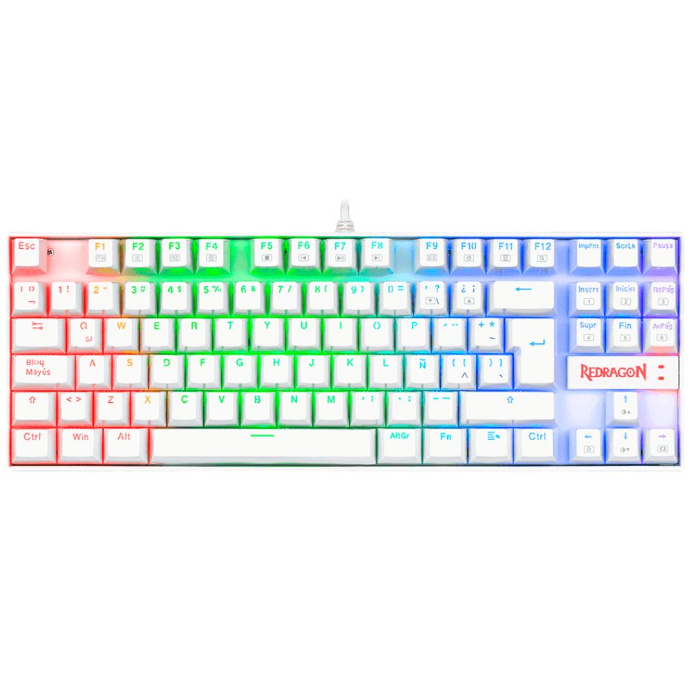 Teclado gamer Redragon Kumara K552 mecánico, alámbrico, conexión USB, switch rojo, luces RGB, blanco