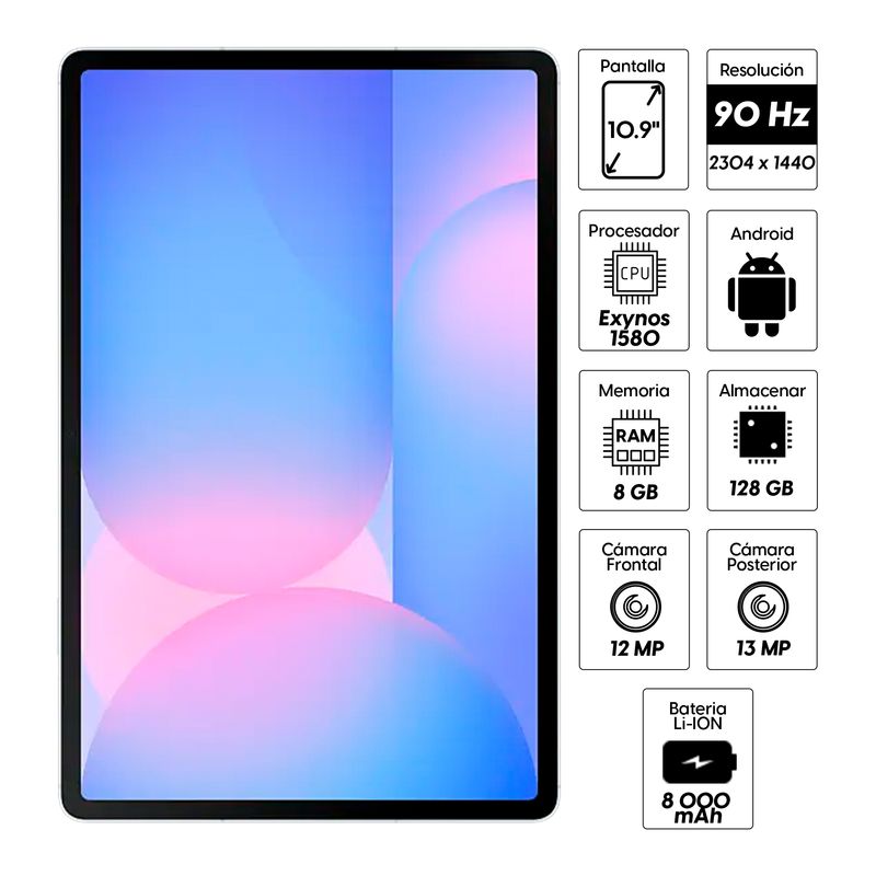 La Tablet Samsung Galaxy Tab S10 FE de 10.9 pulgadas es el dispositivo ideal para quienes buscan calidad visual y rendimiento excepcional. Con su pantalla WUXGA+ de 2304 x 1440 píxeles, disfrutarás de una experiencia visual clara y vibrante. Equipado con 8GB de RAM y 128GB de almacenamiento, este dispositivo te ofrece el rendimiento necesario para realizar múltiples tareas sin interrupciones y almacenar tus aplicaciones y archivos más importantes.