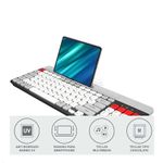 Cuenta con batería recargable de larga duración y una práctica ranura para colocar el smartphone, ideal para multitarea, videollamadas, mensajes o monitorear notificaciones mientras trabajas. Su diseño en español con distribución completa garantiza una experiencia cómoda y familiar al escribir documentos, correos o tareas escolares.