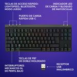 Rendimiento mecánico de alto nivel Con interruptores mecánicos GL de perfil bajo y punto de actuación de solo 1.3 mm, ofrece respuestas ultrarrápidas. Incluye conectividad trimodal: LIGHTSPEED inalámbrico, Bluetooth y cable USB-C. La batería recargable dura hasta 36 horas, y las teclas PBT de doble disparo aseguran resistencia al uso intensivo.