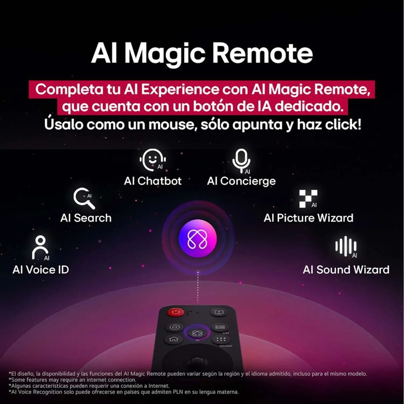 Este modelo 2025 incorpora LG ThinQ AI, que permite controlar tu televisor mediante comandos de voz y conectarlo con otros dispositivos inteligentes de tu hogar. Además, viene con el control mágico, que facilita la navegación intuitiva y una experiencia más cómoda e interactiva para acceder a tus apps y contenido favorito.