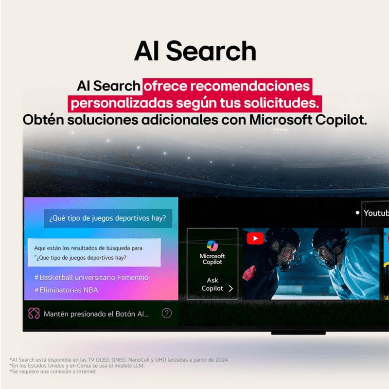 La LG 43UA7300 también está diseñada para la conectividad y la comodidad. Incorpora Home Hub, una plataforma que centraliza el control de electrodomésticos y dispositivos inteligentes, junto con opciones de transmisión inalámbrica como Google Cast y AirPlay. Con el portal de juegos integrado podrás acceder a servicios como GeForce NOW, Amazon Luna o Xbox, disfrutando desde títulos AAA hasta juegos casuales directamente en tu televisor. Disponible en Coolbox.pe, este modelo une estilo, tecnología y entretenimiento en un solo equipo.