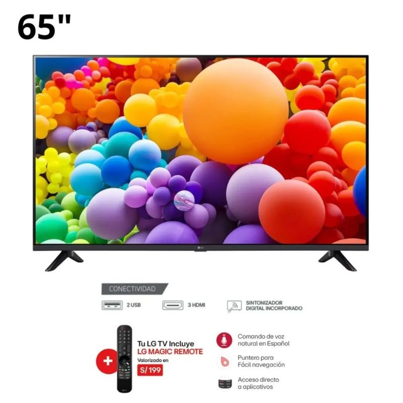 Vive una experiencia cinematográfica sin salir de casa con el Smart TV LG 65” UHD 4K 65UT7300PSA. Su pantalla de 65 pulgadas con resolución 4K (3840 x 2160) ofrece una calidad de imagen superior, con colores más vibrantes, detalles precisos y gran nitidez. Ideal para ver tus películas, series o eventos deportivos con una calidad impresionante desde cualquier ángulo.