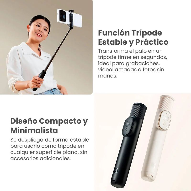 El trípode mini selfie stick Xiaomi 2 en 1 es el accesorio perfecto para capturar tus mejores momentos con estilo y estabilidad. Su diseño combina la practicidad de un palo selfie con la firmeza de un trípode, ofreciendo un dispositivo compacto, ligero y fácil de transportar. Con extensión de hasta 52 cm, resulta ideal para selfies, fotos grupales, videollamadas y transmisiones en vivo sin necesidad de temporizador.