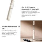 Este modelo incorpora un control remoto Bluetooth desmontable con alcance de hasta 10 metros, lo que permite tomar fotos y grabar videos a distancia de forma sencilla e intuitiva. Compatible con la mayoría de smartphones Android e iOS, su soporte ajustable gira hasta 90° para alternar entre orientación vertical y horizontal, adaptándose a diferentes estilos de grabación. Además, cuenta con base estabilizadora con pies antideslizantes que proporcionan seguridad al usarlo en modo trípode.