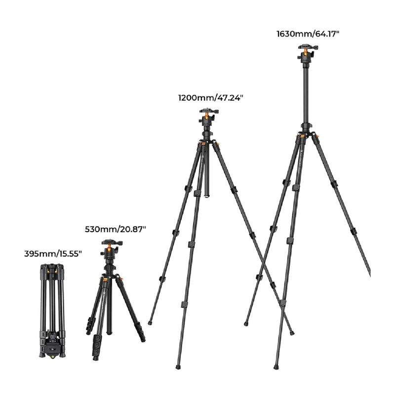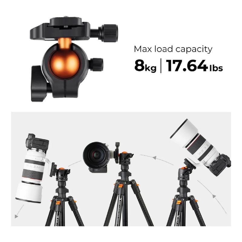 El trípode K&F Concept KF09.101V1 ofrece estabilidad, versatilidad y resistencia para fotógrafos y videógrafos exigentes. Con una altura máxima de 160 cm y construcción en aluminio, combina ligereza con durabilidad, soportando equipos de hasta 8 kg de manera segura.
