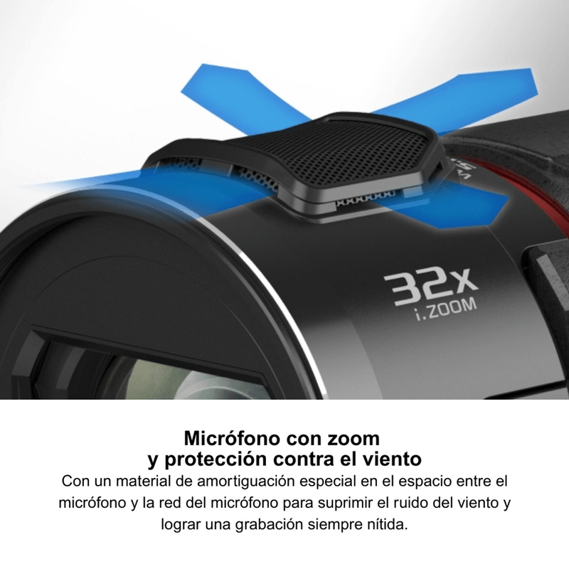 El obturador electrónico de la H900 ofrece una captura precisa y fluida, reduciendo el desenfoque en escenas con movimiento, lo que es esencial para grabaciones de acción rápida o situaciones dinámicas. Además, el micrófono integrado garantiza un audio claro y equilibrado, mientras que la compatibilidad con Dolby Audio (AVCHD) y AAC (MP4) añade un nivel profesional a tus grabaciones, brindando una experiencia de sonido envolvente que complementa la calidad visual.