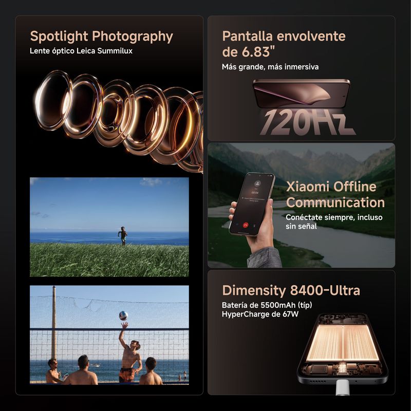 En el apartado fotográfico, el Xiaomi 15T 5G destaca por su sistema de cámara principal triple con sensores de 50MP y 12MP, que capturan imágenes nítidas, luminosas y con gran nivel de detalle en cualquier condición. Su cámara frontal de 32MP ofrece selfies de alta resolución y videollamadas claras, perfectas para compartir en redes sociales o utilizar en entornos profesionales. Además, su conectividad 5G garantiza descargas ultrarrápidas, streaming fluido y navegación sin interrupciones, brindando una experiencia digital avanzada y estable en todo momento.